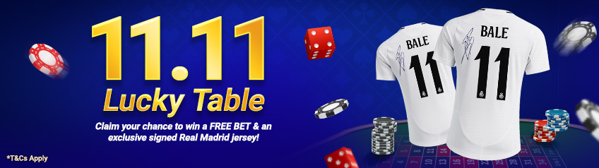 - Players who place the minimum bet on SBO Live Casino games during the promotion period can earn a Free Bet and a chance to win a Gareth Bale–signed Real Madrid jersey, subject to terms and conditions.
