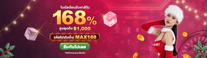 - ทำการฝากเงินครั้งแรกและจะมีการเพิ่มโบนัสต้อนรับ 168% จากยอดเงินฝาก สูงสุดถึง ฿1,000 เพื่อใช้วางเดิมพันในคาสิโนสด SBO