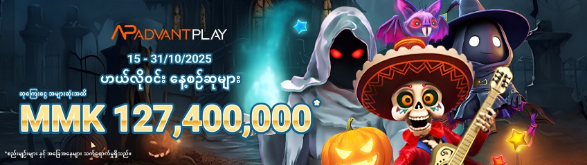 2. ပရိုမိုးရှင်းတွင်ပါဝင်ရန် "ပရိုမိုးရှင်းကာလ" အတွင်း ရွေးချယ်ထားသော AdvantPlay ဂိမ်းများကို ကစားပါ : World Cup Final, Football Fever, Buffalo Rush, Phantom Multiplier, Aztec: Bonus Hunt 2, Crazy Bounty: Jackpot, Aztec: Gold Temple, Jumanji Bonanza, Dark Ritual, Maya: Elemental Totem, Aztec: Bonus Hunt, Disco 777, Bunny to the Moon, Genie Mystery, Boom of Prosperity, Scale of Heaven: Anubis, PUBG 2, DJ Fever, Last Samurai, Jewel Mastermind, Xiang Qi Ways 2, Dragon Chi’s Quest, Crazy Bounty, Hungry Slime, Firefly Hunter, Fish Prawn Crab Bonanza, Kingyo Riches, Starry Adventures, Rush Hour Gold, Disco 777 Hold and Win, Blackjack 21, Cai Shen Fortune, Piggy Bank Gold, Leprechaun’s Fortune, Squid Game 2: Mukunghwa, Pirate Treasure Hunt, Ramakien’s Blessing, Rhapsody’s of Muertos, Sugar Crush, Big Net Bass, Maya Elemental Totem: 2, Slotto 4D, Fantastic Beast, Xmas Gift Delight, Mace of Hercules, LABUBU: Fall in Wind, Mahjong Roar, Cookie Hunter, Infinity Ocean, Buffalo Rush high roller, Golden Egypt နှင့် Pinata Fest.