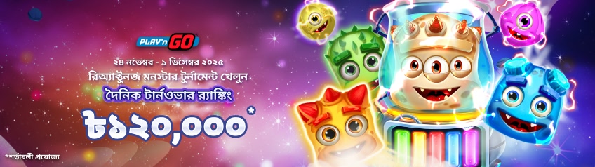 রতিদিনের পুরস্কার জিততে Play ‘n Go গেম খেলুন। মোট নগদ পুরস্কারের মূল্য সর্বোচ্চ ৳ ১,২০,০০০