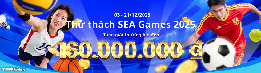 - Áp dụng cho các cược trước trận và cược trực tiếp vào các môn thể thao và thị trường cược hợp lệ của SEA Games 2025 được liệt kê bên dưới; không bao gồm Cược Xiên, Trình Tạo Cược và Cược Chung Cuộc.
