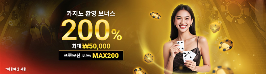 - 첫 입금 시 200% 보너스를 최대 ₩50,000까지 받아 SBO 라이브 카지노에서 즐기실 수 있습니다.