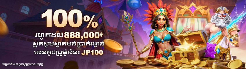- ាក់ប្រាក់លើកដំបូងរបស់អ្នក ដើម្បីទទួលបានប្រាក់បន្ថែម 100% រហូតដល់ USD 300 / 888,000៛ ដើម្បីរីករាយលេងនៅលើស្លុត។